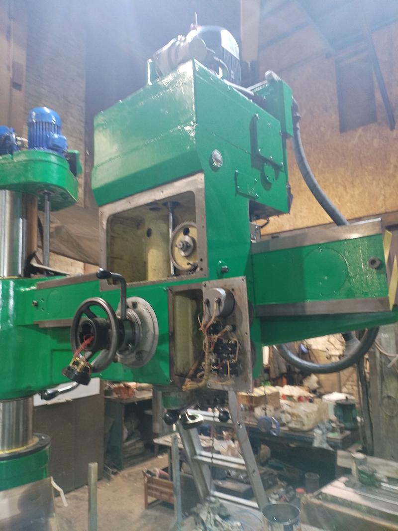 Наибольший условный диаметр сверления в стали средней твердости, мм 50 Вылет шпинделя, наибольший / наименьший, мм 1600 / 375 Расстояние от торца шпинделя до плиты, наибольшее / наименьшее, мм 1600 / 450 Количество ступеней скоростей шпинделя 21 Пределы скоростей шпинделя, об/мин 20-2000 Количество ступеней механ. подач шпинделя 12 Пределы подач шпинделя, мм/об 0,056-2,5 Наибольшее вертикальное перемещение рукава по колонне, мм 680 Наибольшее осевое перемещение шпинделя, мм 350 Конус шпинделя Морзе 5 Наибольший вес инструмента, управляемый противовесом при наибольшей допускаемой затяжке, кг 30 Количество скоростей вращения шпинделя 19 Наибольший крутящий момент на шпинделе, кгс`см 7100 Пределы чисел оборотов в минуту 30 - 1700 Мощность электродвигателя привода шпинделя, кВт 4,5 Мощность электродвигателя перемещения рукава, кВт 1,7 Габариты станка, мм 2665 х 1020 х 3430 Вес станка, 4700 кг 2К522 - в отличном состоянии за 500 000 руб.